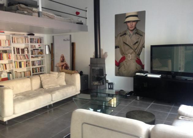 Grand salon de 60m2 avec poêle et cuisine américaine