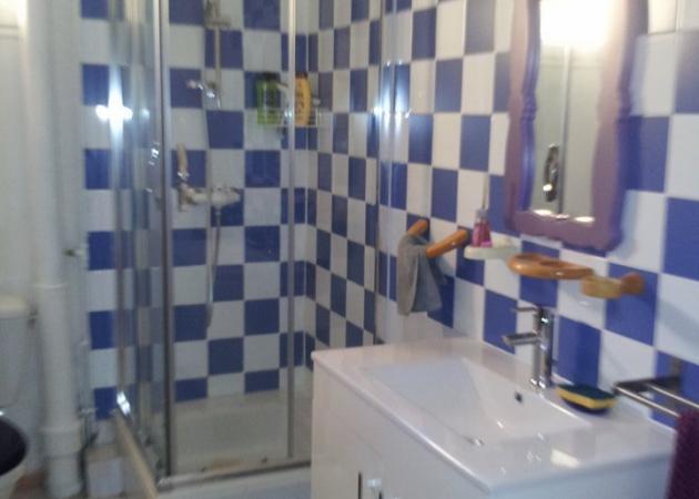 - Salle de bain avec toilette , rangement, table à repasser, fer à repasser.