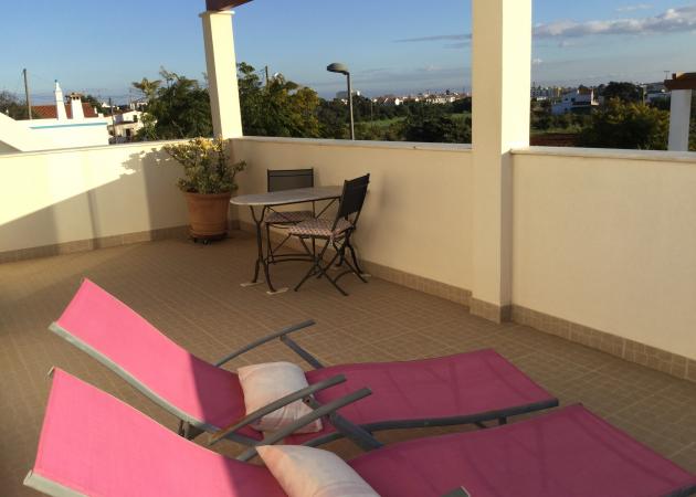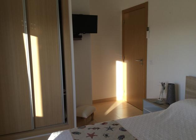 chambre à louer avec climatisation, télévision avec salle de bain privée donnant sur une grande terrasse avec salon et chaises longues vue sur des terrains agricoles oliviers, orangers. Quartier très calme. Plage a 900 mètres avec toutes commodités