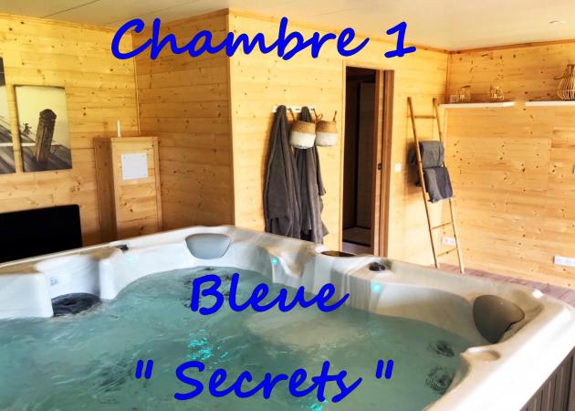 ° La chambre des SECRETS (N°1, bleue) : avec 1 grand lit en 160 cm et vue sur le jardin