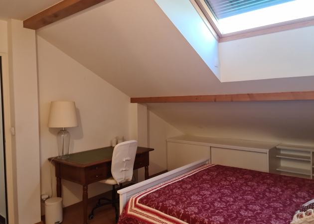 Grande chambre en attique de 17 m², avec une grande salle de bain à partager avec la propriétaire et un colocataire, dans un duplex en attique très calme avec terrasse et vue sur les montagnes. La chambre comprend un lit de 1 m 60, une armoire/penderie, un bureau et plein d'autres rangement, des branchements TV et le Wi-Fi. La cuisine de 44 m² ainsi que la vaisselle et le lave-vaisselle sont à disposition et le frigo. Charges: eau, EDF, WIFI, machine à laver le linge, taxes d'habitation comprises. De préférence locataire longue durée.