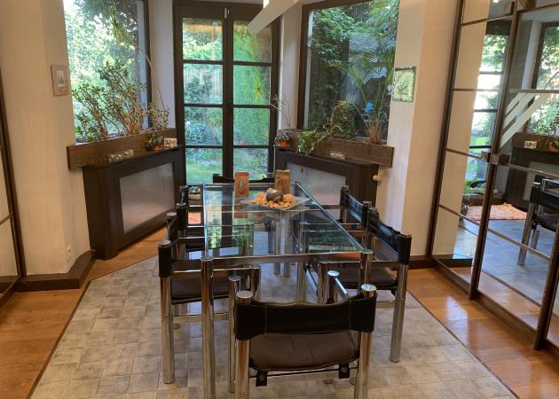 Le salon / salle à manger est accessible avec un four à micro-ondes et la vaisselle (participation de 1,50€). Le jardin est également accessible.