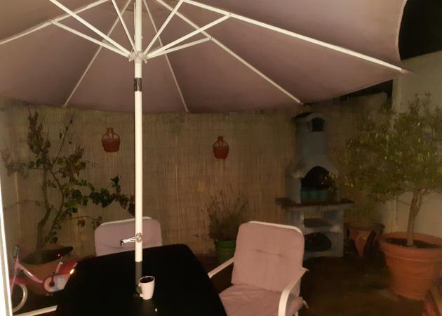 Terrasse, salon salle a manger, cuisine, salle de bain en commun avec moi meme.