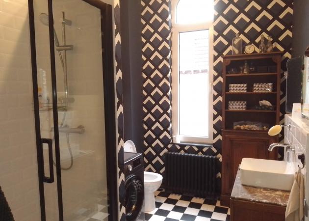 La salle de bains est partagée. Une cuisine à l'étage est disponible pour les 2 locataires.