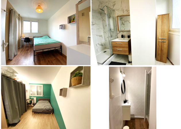 Les 4 chambres sont disponibles à partir du 1 juin 2022. Chambre : 370€/mois (chauffage, eau, électricité, internet), éligible pour la CAF. Pas de frais de dossier. Bail individuel. Caution 2 mois de loyer hors charges.