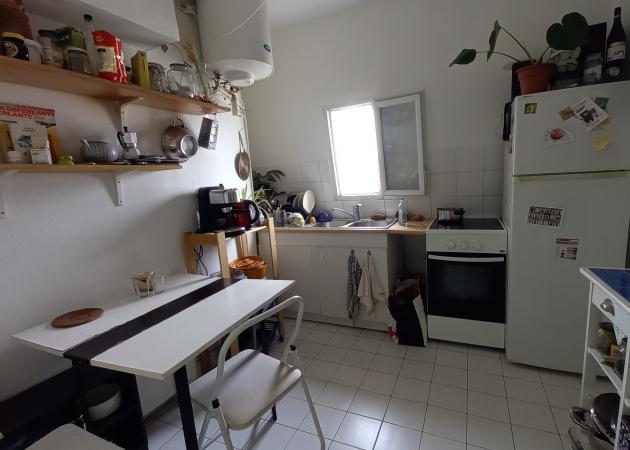 La chambre fait partie d'un appartement avec deux autres chambres, une salle de bains, une cuisine et un salon en commun. Il faut juste savoir que l’état de la cage d’escalier est fortement dégradé.