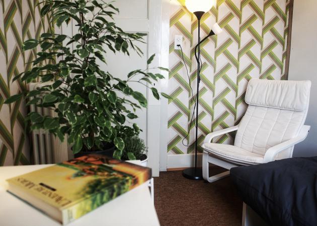 Chambre tranquille, meublée IKEA orientée Nord-Ouest avec vue sur les grands arbres: