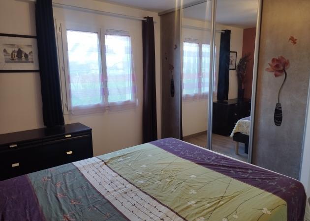 La chambre est équipée d'un lit de 160*200 avec un matelas neuf et d'un grand placard aménagé. Les espaces communs tels que la cuisine, le séjour, la salle de bain, les toilettes, la terrasse et le jardin sont partagés. Une place de parking est disponible, il est indispensable d'avoir un véhicule motorisé.