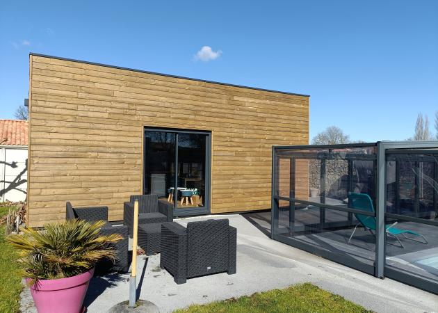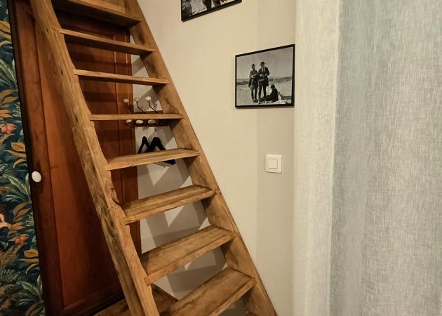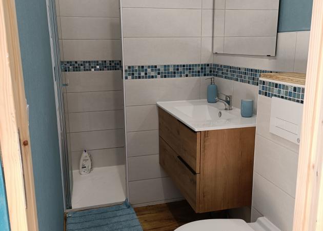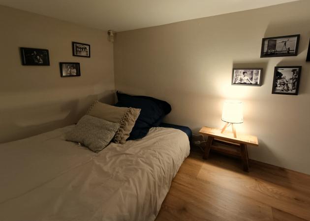 kitchenette, salle de bain avec douche et WC, espace salon avec un canapé convertible (literie de qualité), mezzanine avec 2 couchages (à noter que la hauteur sous plafond de la mezzanine est de 95 cm)