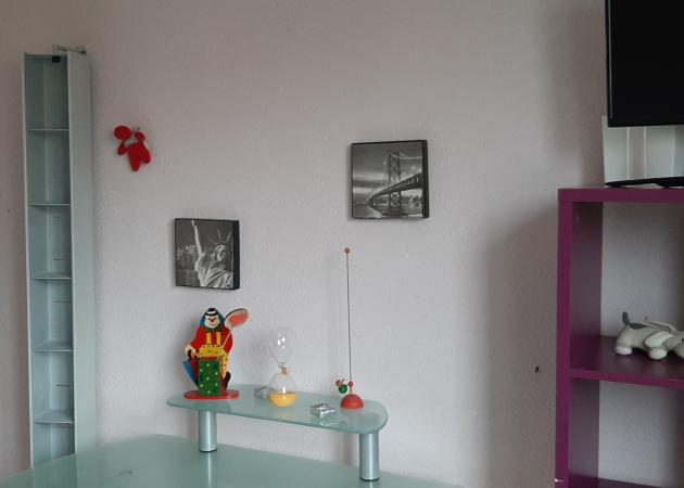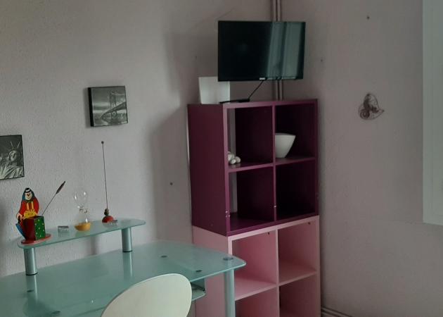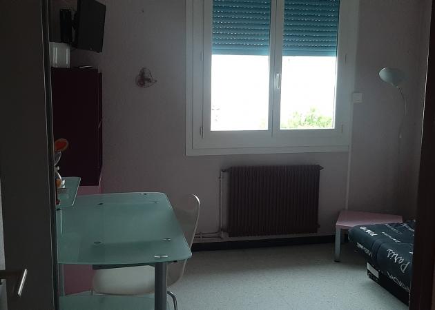 Appartement de type T4 avec garage privatif, jardin privatif, 3 chambres dont une à louer de 10 m2, avec penderie, rangement, tv, étagères, lit BZ, couette, draps, oreillers et taies d'oreillers, loyer de 350 euros mensuels, charges comprises (électricité, chauffage, eau, internet).