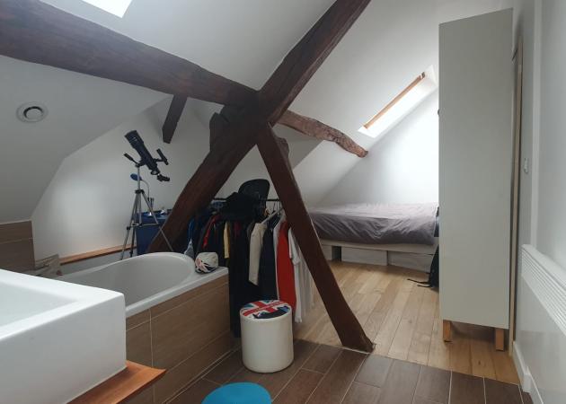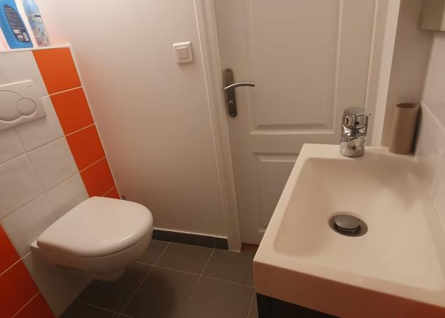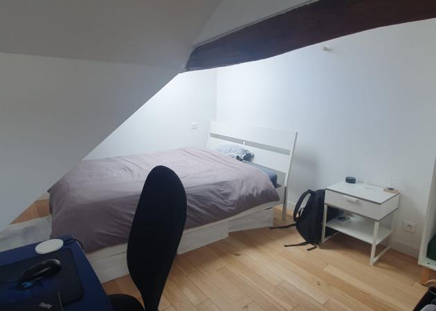 Juxtaposée à une salle de bain personnelle de 6 m2 comportant un évier, un bain/douche et des placards. Les WC sont partagés avec un autre étudiant.