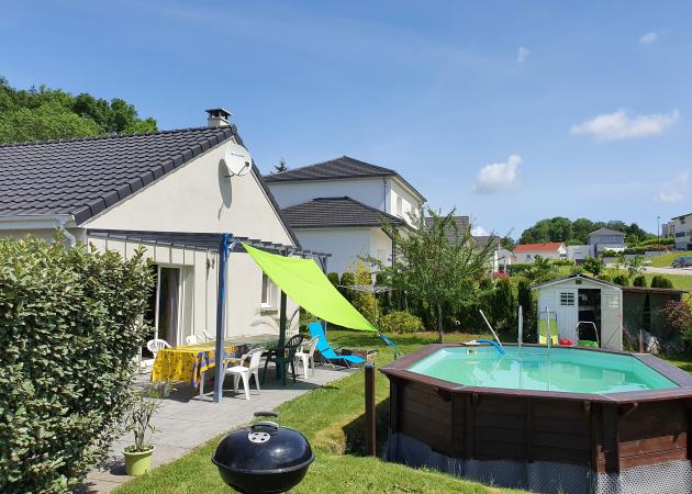 Maison de 105m² à Montfaucon avec 1 chambre privée avec verrou et bureau pour 2 personnes maxi(lit neuf 190x 140) , et accès aux espaces communs pour 60m²(salle de bain,Wc,cuisine,salon(tv) et double terrasse avec vue sur piscine.