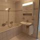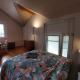 Lit en 140 de large, bureau, armoire, étagère. Une salle de bain (baignoire, lavabo, WC) et une salle d'eau (WC, lavabo) à partager avec 2 autres chambres.