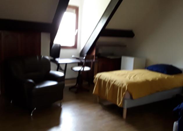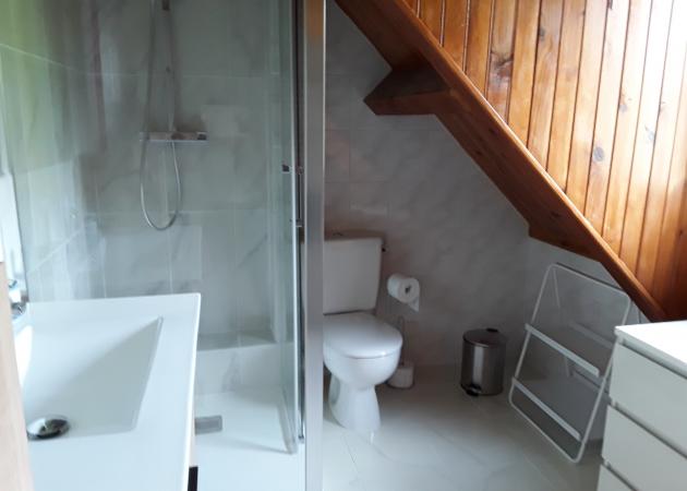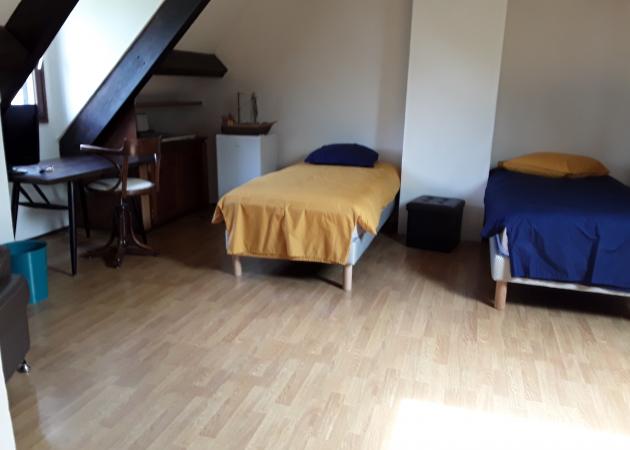 A l'étage, je loue une très belle chambre avec 2 lits 90x190cm. Lits et literie neufs. Réfrigérateur. Salle de douche avec WC.