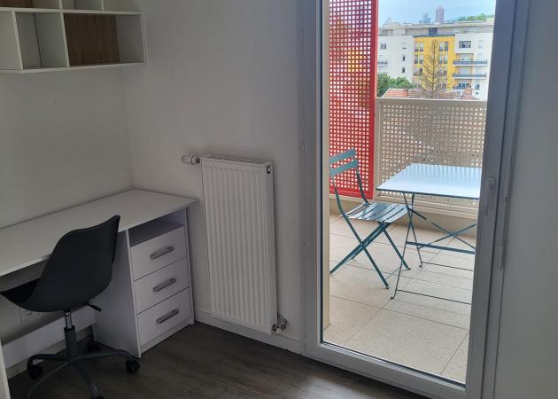 Lit simple gigogne, bureau, étagères, placards dans la chambre qui donne sur une belle loggia de 6 m2 et située à l'opposée de la chambre principale (intimité préservée).