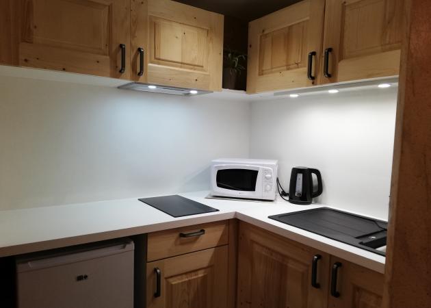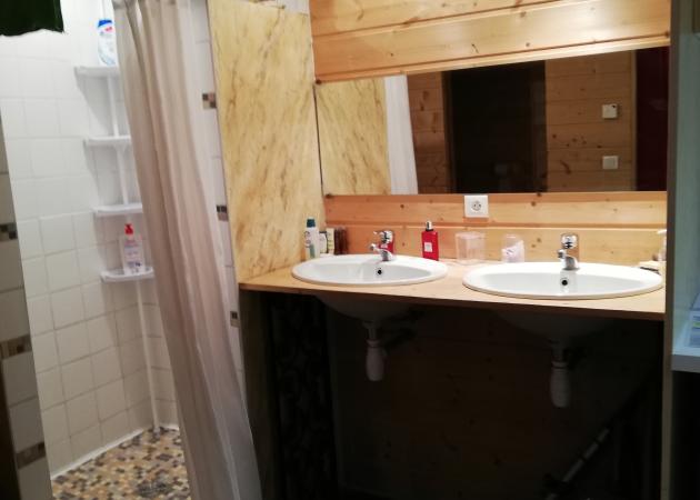 2 Grandes pièces spacieuses (indépendantes) comprenant douche, WC, 2 lavabos, frigo, micro-onde, grand lit (1 m 60 sur 2 m), un clic clac, une table, chaises et armoire.