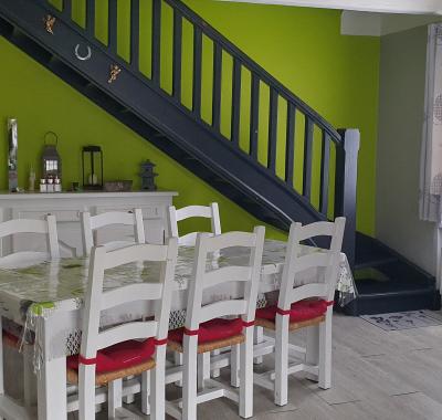 Maison de plein pieds, stationnement devant la maison. Garage pour vélo.
