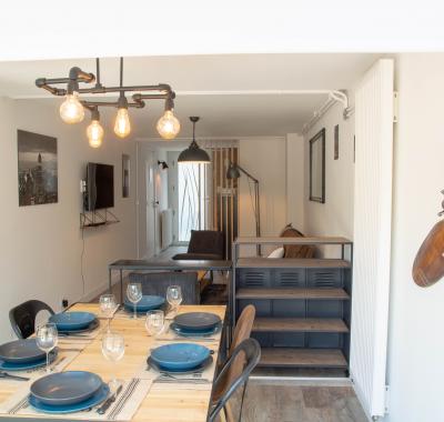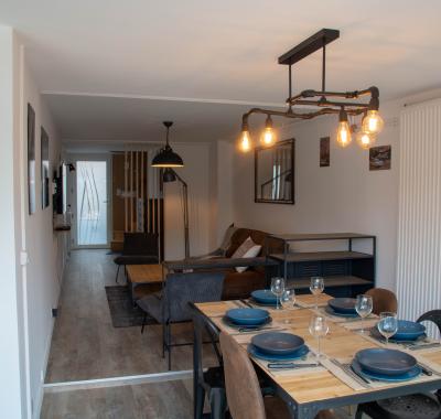 cuisine/salon : plaque induction, four, frigo, micro ...