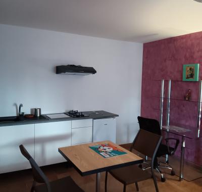 Studio cosy de 25 m2 en rez-de-chaussée, avec wc séparé et salle de bains à l'étage.