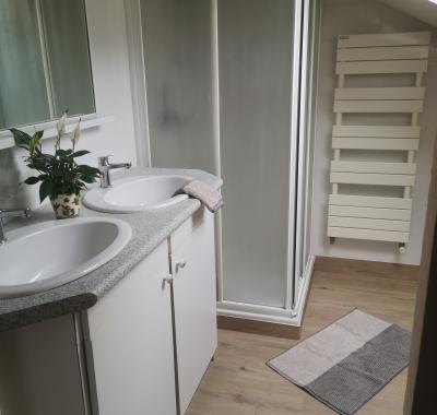 chambre lit 140 cm pour 2 personnes + salle de bain.