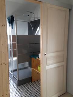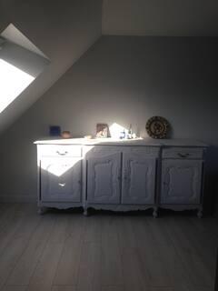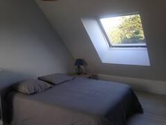 chambre double avec dressing, table, fauteuil. Salle d'eau à part et à partager, ainsi que toil...