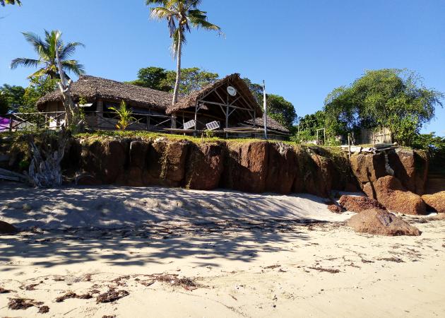 Avec l’hospitalité d’une famille Franco Malgache, vivant à proximité dans une maison de même nature que les bungalows, écologique atypique Malgache en bois et panneaux de bobos, l’ensemble consacrés à votre Bien-être édifié écologiquement en bois et en matériaux du pays, toiture végétale en feuilles de Ravenala, (arbre du voyageur), dans le respect total de l'Eco-Nature et de l'Eco-Système construit sur une petite falaise à 25 m du bord de l'eau avec une belle plage de sable blond uniquement pour vous.