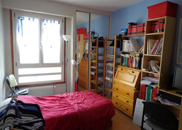 La chambre, exposée au sud, est équipée d'un lit, d'un chevet, d'un bureau, d'une bibliothèque et d'un placard avec penderie.