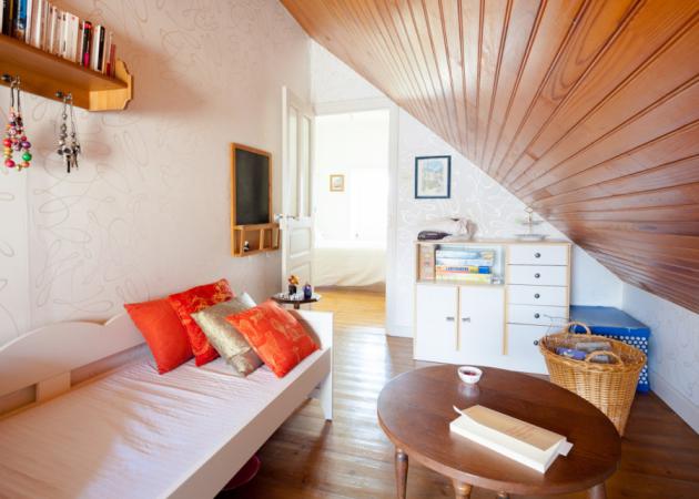 Vous profiterez d'une belle chambre et de son cabinet de lecture attenant, d'un grand salon et d'une salle de bains à votre disposition.