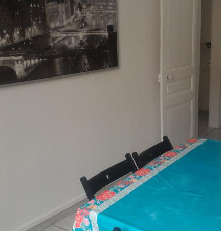 1 salon / séjour : abonnement internet, 1 télé, table, 4 chaises, canapé...
