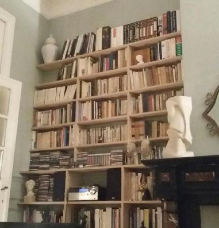 L’étage plus contemporain est articulé autour d’un long hall de nuit / bibliothèque.