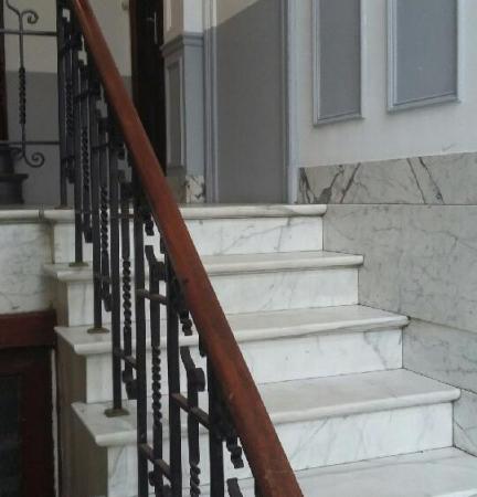 L’accès à ‘appartement ce fait par un vaste hall en marbre blanc avec seulement 8 marches à gravir.