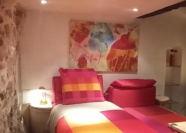 La chambre est équipée d'un lit 180x200, d'un four microondes + petite table + chaises. Linge de lit et de bain fourni. Faisant chambres d'hôtes, je peux proposer diners et petits déjeuners classiques ou ss gluten, végétariens, végétalien, vegan, le tout bio et/ou production locale.