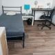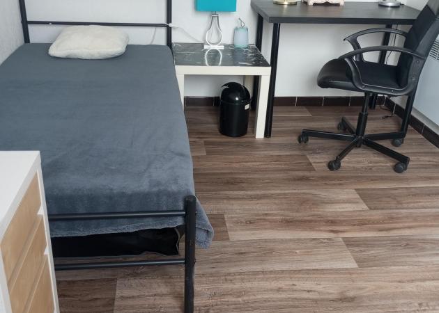 La chambre est très claire (plein Sud), disposant d'un lit une place, d'un bureau, penderie, draps et couette fournis.