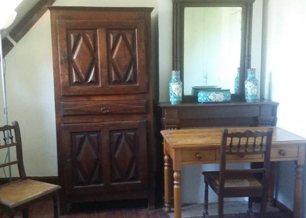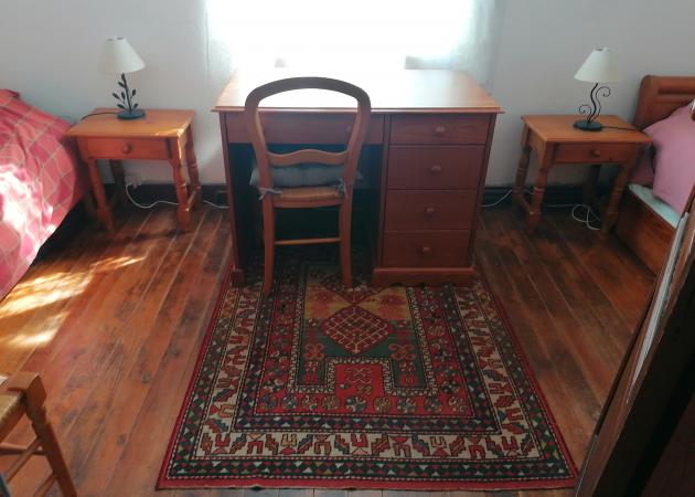 1ère avec lit à 2 places, armoire, bureau, télévision et penderie sur pallier.