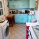 Coin cuisine sur le pallier avec petit frigo, micro ondes, plaques électriques, four, Vaisselle. Bouilloire et cafetière Nespresso.