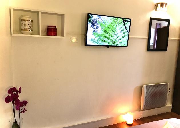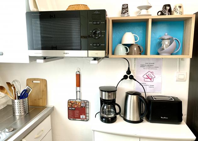 - Lit 2 places matelas 22 cm en bon confort !! TV écran plat image en Hauts Définitions. Armoire. Cuisine emménagée avec tout nécessaire, plaques induction, frigo, mini four à Chaleur Tournant, micro-ondes machine à café, machine Expresso. Bouilloire etc..