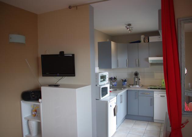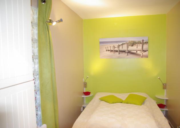 4 couchages. 1 chambre avec lit 2 places (140) et un canapé lit 2 places (140) dans le séjour.