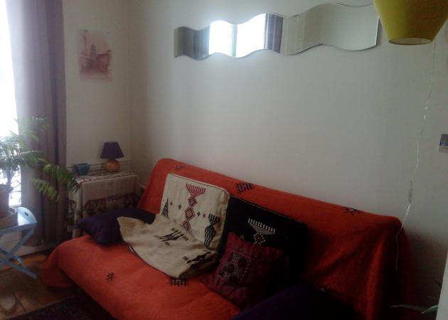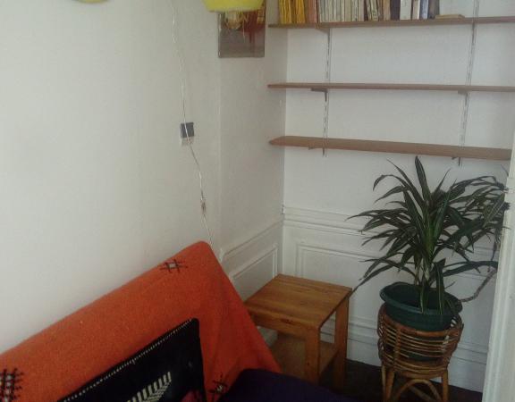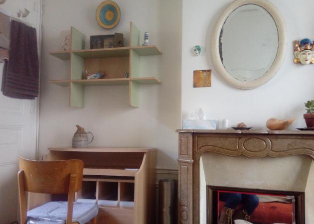 l'appartement est dans un Ancien Immeuble Haussmannien au 3me étage, la chambre se situe côté cour, elle est lumineuse, avec un canapé lit,un bureau et une penderie, mini frigo, bouilloire et cafetière à disposition
