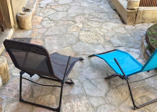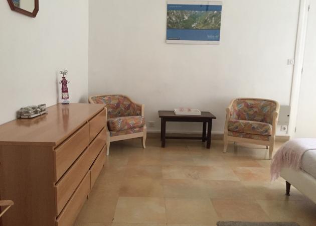 Vous avez accès au séjour et à la salle de bain destinés uniquement aux voyageurs, à la cour intérieure équipée d'un coin repas et d'un transat.