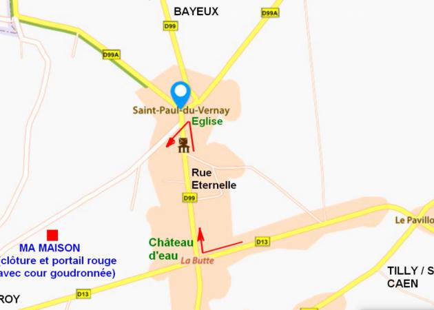 Ma maison est située dans un village à 12 kms de Bayeux, à 35 kms de Caen et à 30 kms de St Lô, donc la voiture est indispensable, car il n'y a pas de transport en commun régulier vers les villes les plus proches.