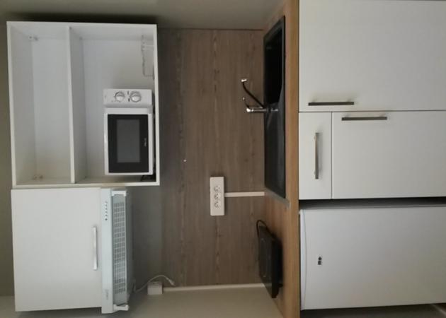 A louer, dans appartement 3 pièces, chambre de 19m2 équipée douche et cuisine.