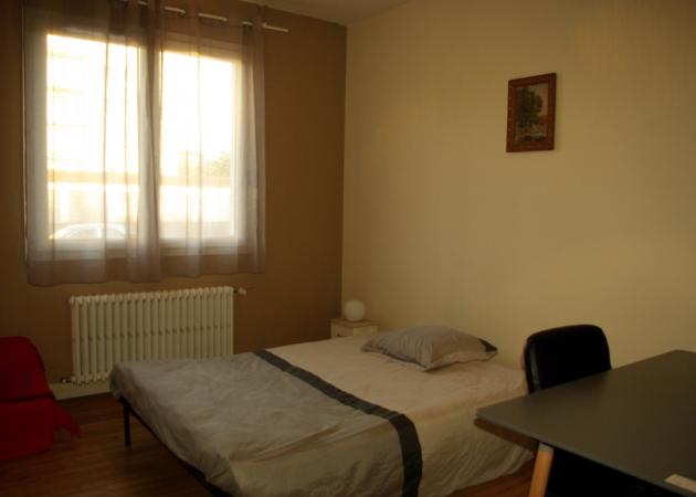 La chambre fait 10m2. Vous aurez un grand lit, une étagère, un accès internet.