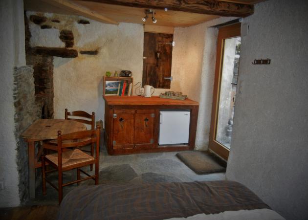 Lit 140x200, coin petit déjeuner avec frigo, bouilloire, vaisselle. Wi-Fi, chauffage électrique.