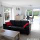 La maison est entourée de pelouse comprenant une terrasse aménagée:mobilier de jardin.