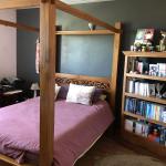 Chambre composée d'un lit 2 personnes, placards, chevet.