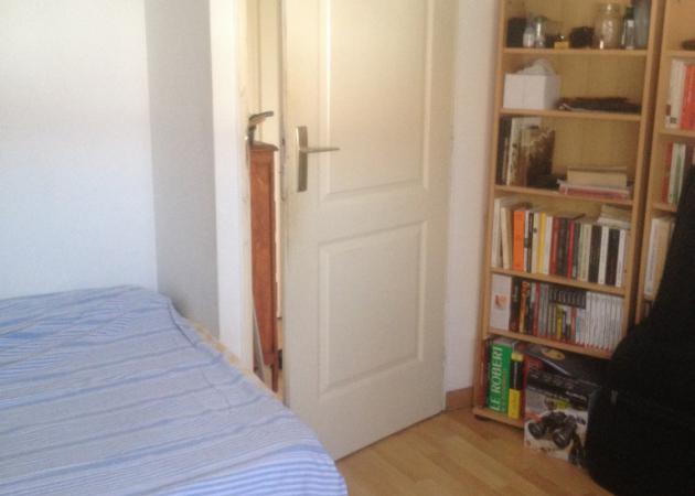 Chambre à louer à l'étage de la maison comprenant un lit double, une armoire, une étagère, un bureau. Wifi disponible. Salle de bains à partager.