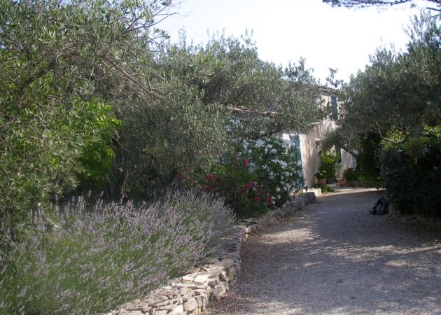 Grand jardin de garrigues, clos , planté d'oliviers. Chaises longues, hamac, Parking sur place.