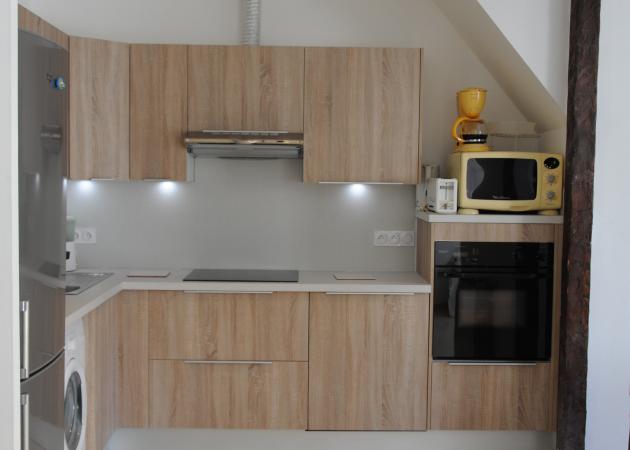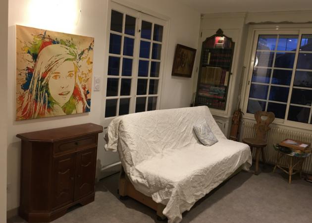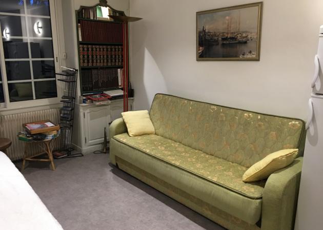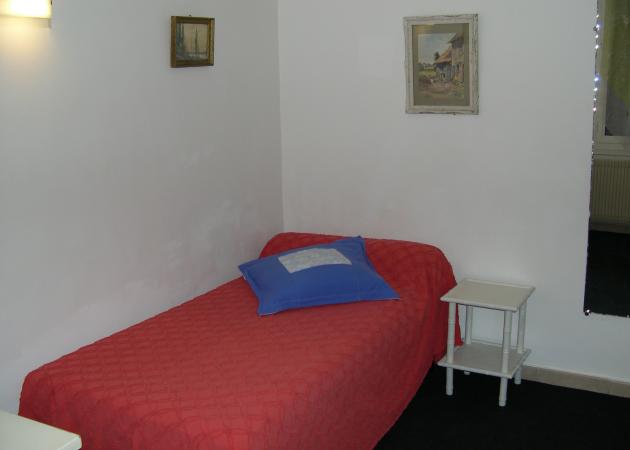 La chambre est meublée d'un lit en 90, grande armoire, table, siège, chevet et fenêtre sur cour. Linge de maison fourni.