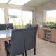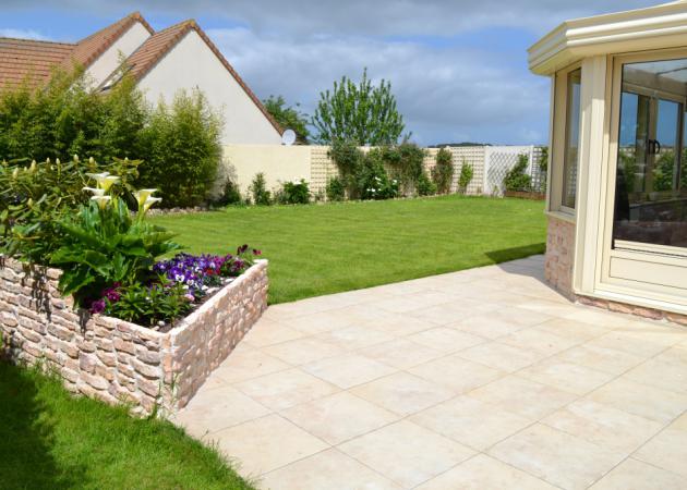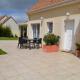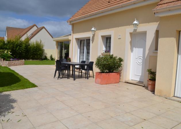 Une grande terrasse (se prolonge tout autour de la maison), équipé d'une table et chaises pour repas extérieur, parasol, barbecue. La maison est entièrement fermée (par un mur et arbustes), très calme et en toute sécurité (dans un cul-de-sac).