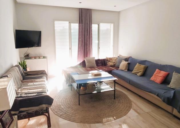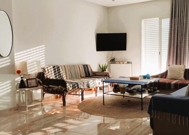 L'appartment se compose d'une grande cuisine totalement aménagée et équipée, d'un grand salon de 40 m² d'un côté avec un coin canapés détente, une bibliothèque et l'IPTV, et de l'autre côté une salle à manger élégante, le tout couronné d'une belle vue dégagée de La Marsa, Sidi Bousaid.